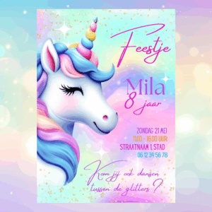 Nodig je vriendinnen uit voor een magisch eenhoornfeestje vol kleur, glitter en plezier! πβ¨